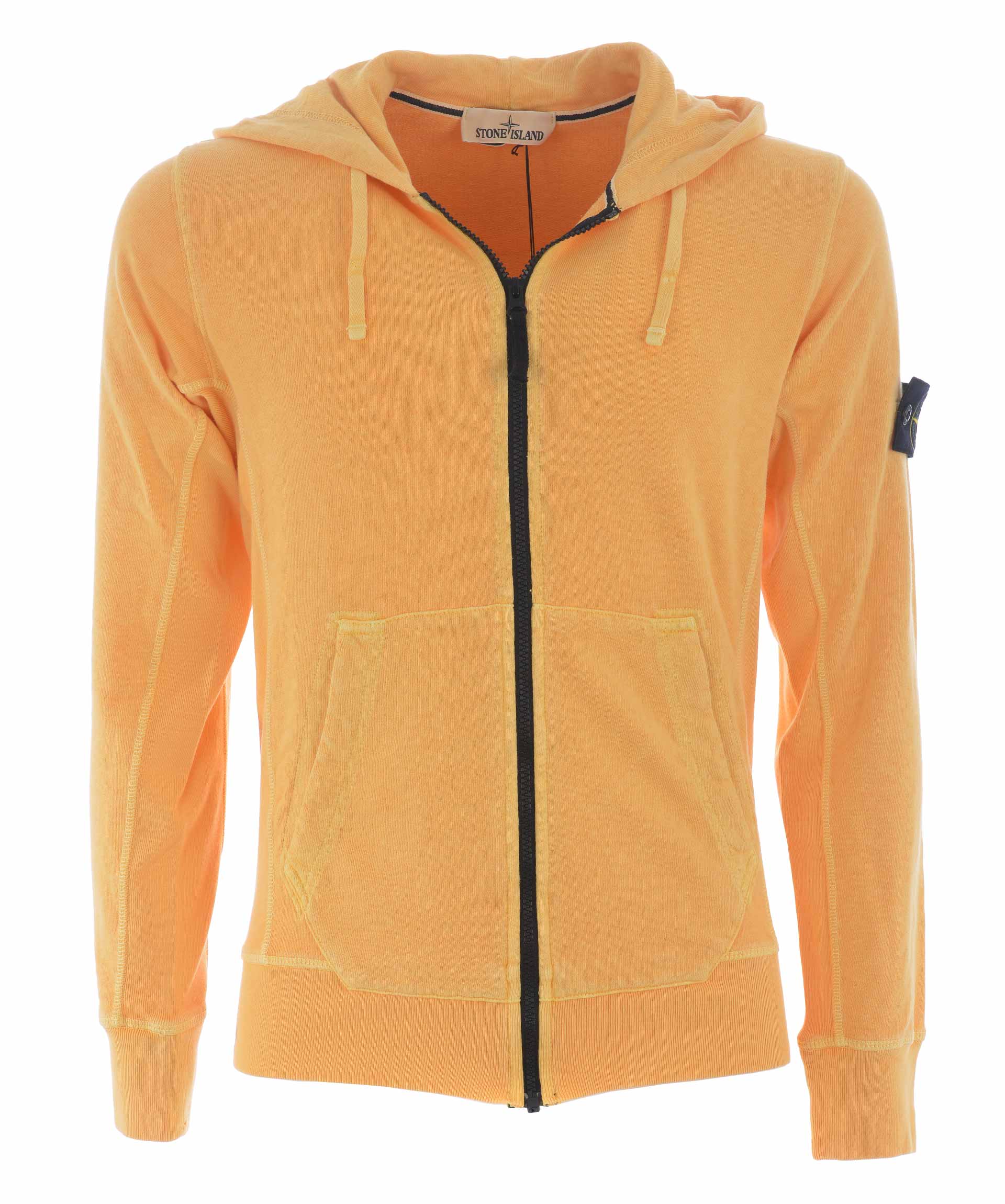 Felpa Stone Island in cotone malfilè Arancio effetto old. Cappuccio con coulisse. Chiusura con zip. Tasche frontali. Polsi e fondo a costine. Patch logo in lana sulla manica sinistra, removibile. Misura in foto S 100% cotone