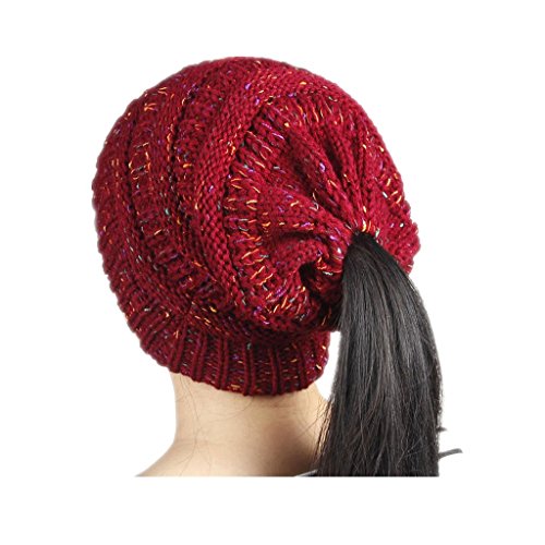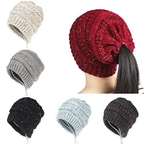 Features: 100% brand new and high quality High or low opening, depending on how you wear it Durable and stretchy elastic band to adjust to any size or style of hair. Perfect for pulling your messy bun or high ponytail through on chilly days Durable and stretchy elastic band to adjust to any size or style of hair. Cozy and cute, it's a perfect hat to work out in to keep you looking super fashionable, and keep your hair up and out of the way. Wear hat tighter around the head for a high pony tail or bun, or back further and slouchy for a lower pony tail or bun Specification: Material:Material: Acrylic Size:8.26"*8.26" Quantity: 1pc Warm prompt: 1.Because of different monitors and lamplight,the picture may not reflect the actual color of the item,really thank you for your kind understanding! 2.Hat only,other accessories(if any)irrelevant demo in the picture are not included. Packaging includes: Hat x 1 (with retail package) 0
