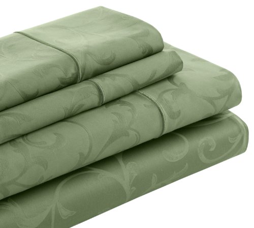 Cuddledown 400 Thread Count Jacquard Flat Sheet, Queen, Water Lily