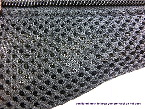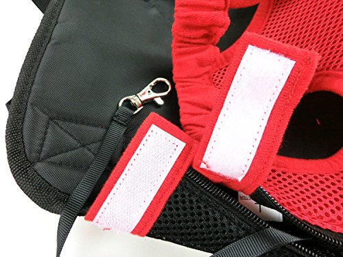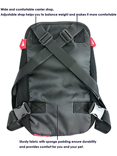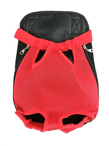 ● BREATHABLE MATERIAL: Made from breathable mesh and canvas, durable and comfortable. Two mesh side panels allow maximum air circulation. ● EASY IN AND OUT DESIGN. Two side zippers on the long sides of the carrier and velcro at the dog's neck. Legs-out, tail-out and head-out design keeps your pet safe and comfortable when you carry your cat or dog around. Release buckles on the end of straps ensure quick installation with just one hand. ● REDUCE PRESSURE ON YOUR SHOULDER: Adjustable straps with clips can be worn on your front or back, for easy installation and reduce pressure on your shoulders. ● ADJUSTABLE FOR A COMFORTABLE TREATMENT: Hook and loop, zipper and elastic openings allow you to fit your dog inside comfortably.
