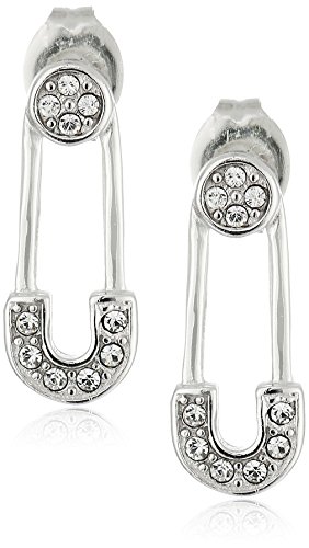 Rhodium Plated Sterling Silver Pave White Swarovski Crystal Safety Pin Stud Earrings