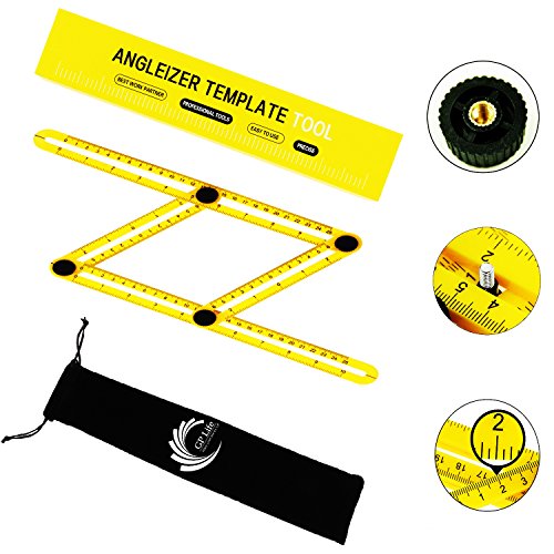 - IN & CM ANGLES MEASUREMENTS, FREE STORAGE BAG: Adjusting the tool to fit all shapes & angles quickly & easily. All the arms are dual-calibrated in inches and metric measures. When you're finished with your work, fold it down for compact storage in our easy-cinch bag.