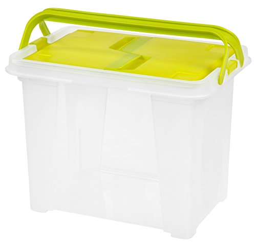 IRIS Letter Size Portable Wing Lid File Box with Handles, Green