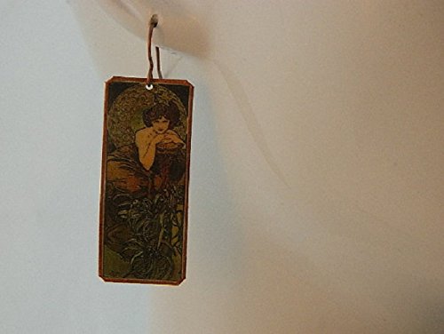 -. Title : Art Earrings Alphonse Mucha Emerald