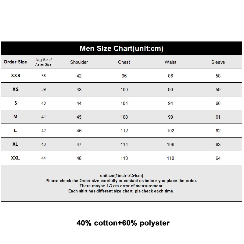 Material:40% cotton, 60% polyster