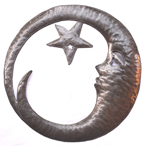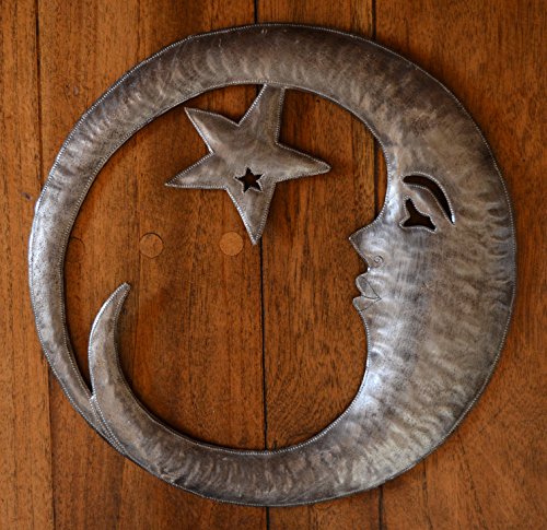 Crescent Moon Wall Sculpture, Outdoor Home Decor, Recycled Metal Art, 15" X 15"