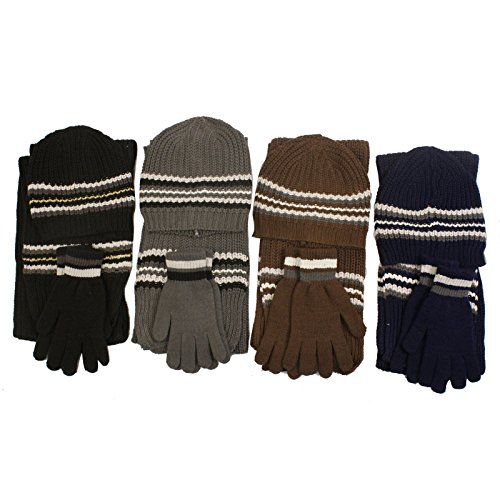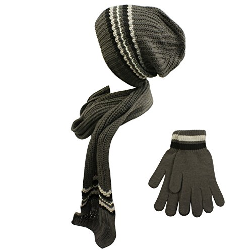 - Title : Winter Girls Ladies Knit Stripe Scarf Beanie Hat Cap Gloves Ski 2pc Set Gray M