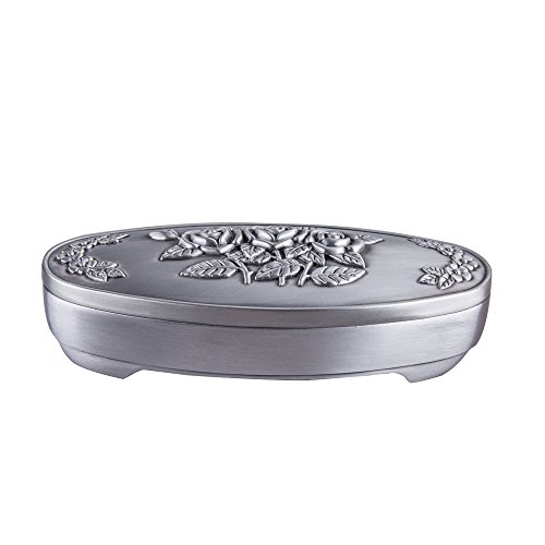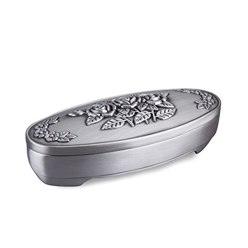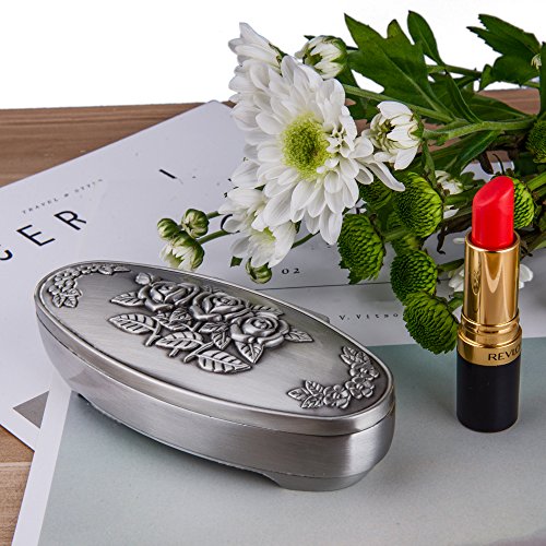 Feyarl Vintage Trinket Box Treasure Organizer Ring Earrings Jewelry Box Engraved Rose for Gift