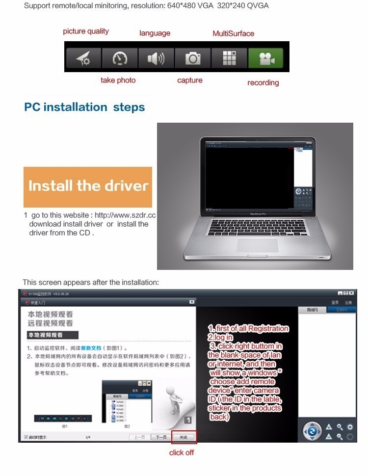 3. Support remote viewing online by pc, phone, pad and android phone