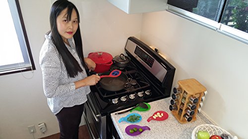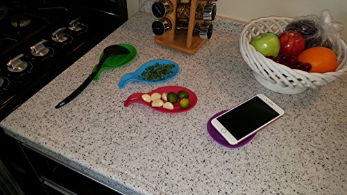 -. Feature : CRAFTED FROM DURABLE HEAT RESISTANT BPA FREE SILICONE - will not crack or warp from hot utensils - withstands temperatures up to 500° F - go ahead and place cooking utensils on it even if you just took it out of the hot pan / PERFECT SIZE FOR LARGE AND SMALL UTENSILS ALIKE - even works well with large BBQ tongs/spatulas / STAIN PROOF - stands up to the toughest food stains while retaining a colorful appearance / CONVENIENT HANGING HOLE/GROOVE IN HANDLE - makes storing near the stove easy while ensuring hot utensils remain securely in place / COMES IN FOUR ATTRACTIVE COLORS - purple, red, green, and blue