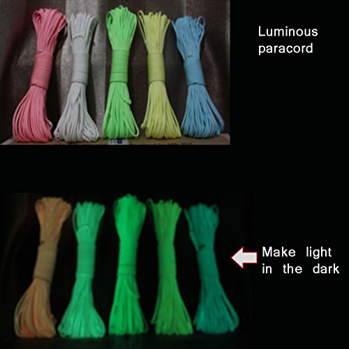 PSKOOK Paracord Glow in the Dark Luminous Parachute Cord Outdoor Survival Kits for Camping Hiking 9 Strands Rope 100 Feet