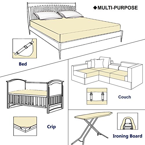 The bed sheet holder strap is a genius sheet /cover fastening system which makes your life Easier and more Enjoyable. Our bed sheet fastener straps are made of sturdy nickel plated metal clips and heavy duty elastic bungee cords that will grip your bed sheets firmly all the time. The enhanced clamps design and the built-in plastic clenching system protects the fabric from being damaged! The thicker and wider elastic bands ensure a stronger and more durable holding. They can be used to secure not only Bed Sheets but also Sofa Covers, Seat Covers, Tablecloths, Ironing Board Covers and Even Slipcovers! Premium quality at competitive price! Specifications: Color: White Material: Elastic Nylon Band Nickel Plated Clamps Plastic Bungee Package Includes: Set of 4 Two Sizes Bands (with Enhanced Built-In Nylon "Teeth") 0 |