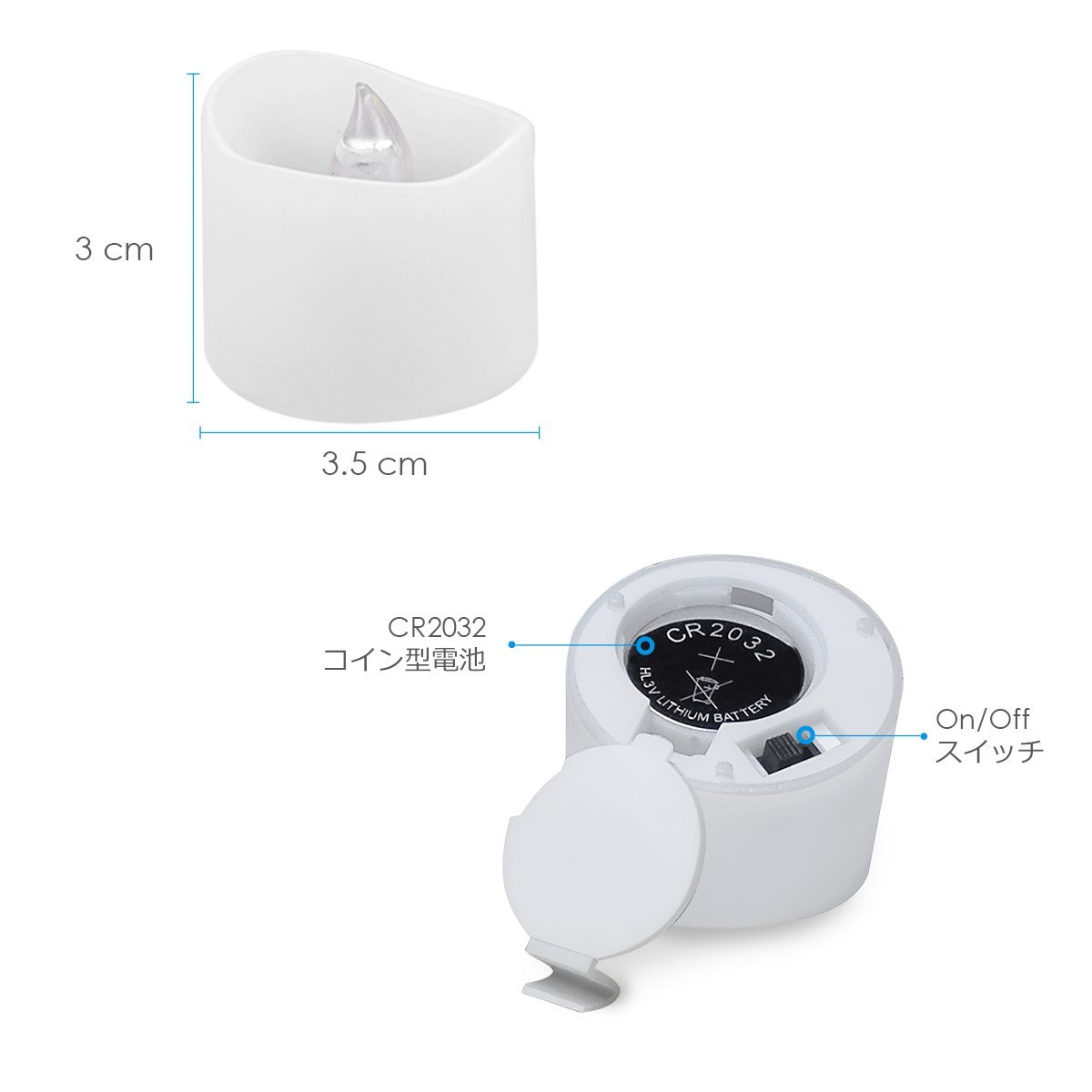 12 x 3V CR2032 battery (built into the candle)