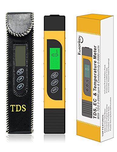 Water Test, Kusonkey TDS Meter Professional TDS, EC & Temperature Meter, 3 in 1 Accurate and Reliable TDS Tester with Protective Leather Case for Drinking Water, Aquariums, Ponds