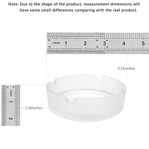-. Feature : Made of glass, modern design, heavy duty(approx. 0.55 LB or 250g). A great gift for smokers. A beautiful art decoration for your desktop. / Perfect for small tables, desktops, bars, restaurants, etc. Dishwasher safe, easy to clean. / 4 cigarette-holder slots, good for emjoy smoking with friends. / Approx. diameter: 4.15 Inches(10.5 cm). Approx. Height: 1.36 Inches(3.5 cm) / We guarantee quality and service. Fully Refund if you are unsatisfied!