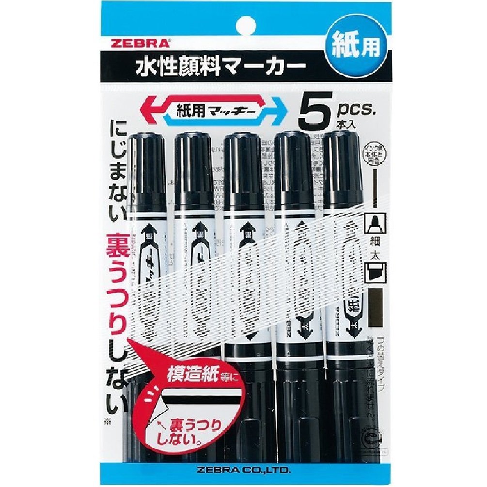 Zebra aqueous marker McKee P-WYT5-BK black 5 pieces for paper