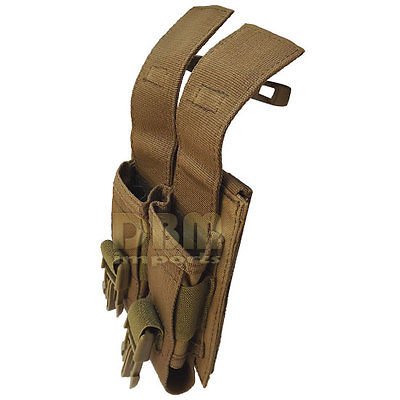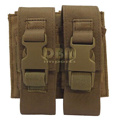 -. Binding : Misc. -. EAN : 5414966974988 -. Feature : Double Flash Bang Pouch / Color: TAN ; Size : 5"H x 4"W x 1"D / Designed to hold two flashbang grenade ; Can also be used as a smaller GP utility pouch / Adjustable strap with quick release fastex type buckle on top flap;Securely attaches to any MOLLE compatible platform / Quantity: 1 ;Weight: .45 lbs -. Label : Generic -. Manufacturer : Generic -. ProductGroup : Sports -. ProductTypeName : SPORTING_GOODS -. Publisher : Generic -. Studio : Generic -. Title : TAN Molle Tactical Double Flash Bang Pouch PALS MAG Bag 2 Grenade Holder