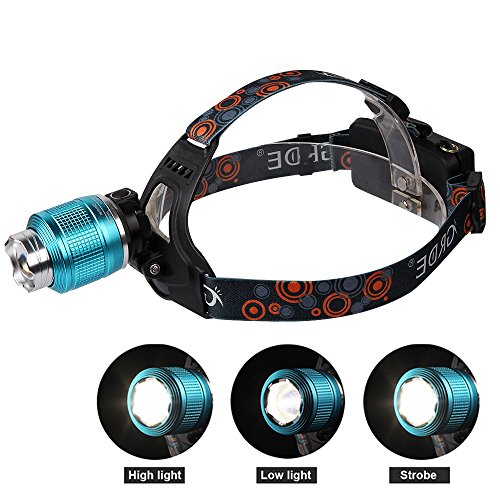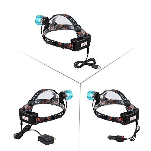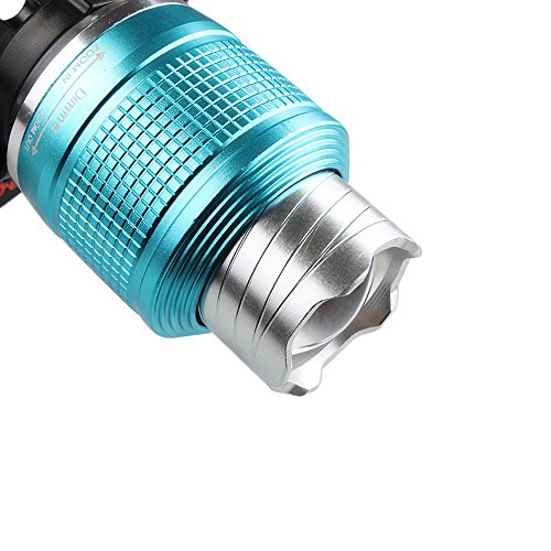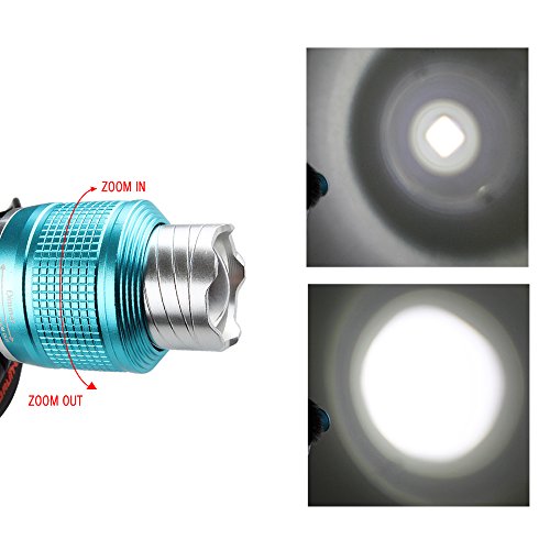 - Feature : Powered by one or two 18650 batteries (included), also including wall charges, USB cable and car charger / 3 Switch Modes: High-Low-Strobe, conveniently for different place to use; With this hands-free light, you can not only read at night, but also can do outdoor activities,such as, running, jogging,hiking,riding,hunting,etc / Zoomable : zoom in for spot lighting, zoom out for flood lighting / Aluminum material, waterproof, adjustable, you can adjust the position of the light beam to go directly to the front or point it down to the ground and adjust the head strap for your usage / T6 LED Bulb, extensive lifetime of LED (100,000 hours)
