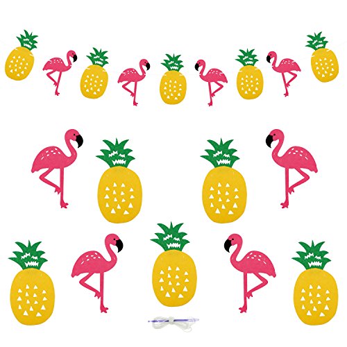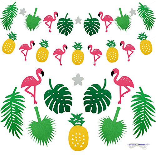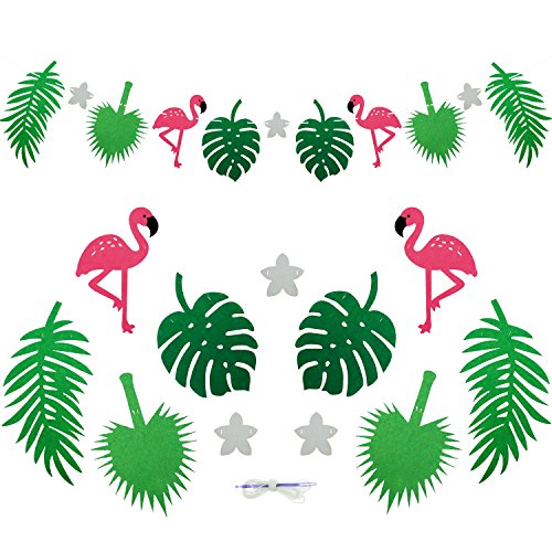 -. Feature : Party Decorative Banner Enough Quantity: Flamingo Ornament Includes 2 Pack, flamingo pineapple banner and flamingo tropical leaves garland. / Flamingo Tropical Leaves Garland: Include 2 Pink Flamingo, 2 Palm Leaf, 2 Coconut Leaf, 2 Monstera, 3 White flower, a total of 11 ornaments accessories. / Flamingo Pineapple Banner: Include 4 pink flamingos, 5 pineapple, a total of 9 ornaments accessories. / Pink Flamingo Tropical Leaves Decoration Easy to assembly: The string is cotton twine, with free about 8.2 feet and presented simple threaded devices. / Pink Flamingo Decor Variety Purpose: Beach bachelorette party supplies, congratulations banner, baby shower banner, wall banner, hawaiian birthday banner, tropical birthday banner, etc.