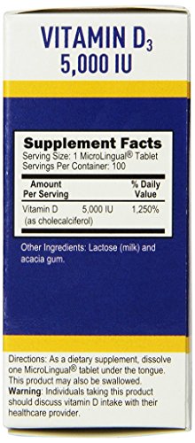 Superior Source Extra Strength Vitamin D3 5000 IU 100 MicroLingual Tablets in Bundle with Biosource Nutrition Pocket Pill Pack. Instant Dissolve MicroLingual Tablets go to work fast, under the tongue. Vitamin D works in conjunction with calcium to promote the development and maintenance of strong bones and teeth. This Vitamin D product is in Vitamin D3, the finest source of Vitamin D available.* Biosource Nutrition Pocket Pill Pack (5 compartments). Directions: As a dietary supplement, dissolve one MicroLingual tablet under the tongue daily. May also be swallowed as you would a regular tablet.Feature