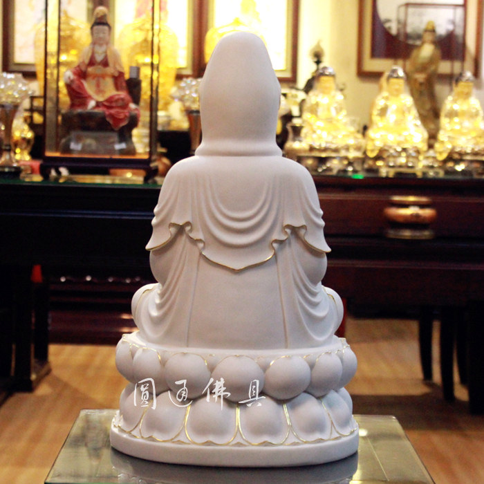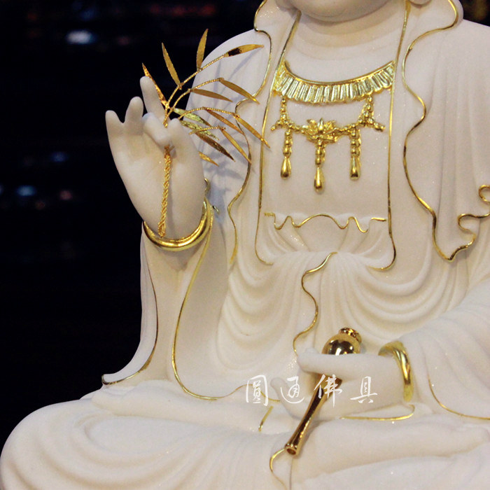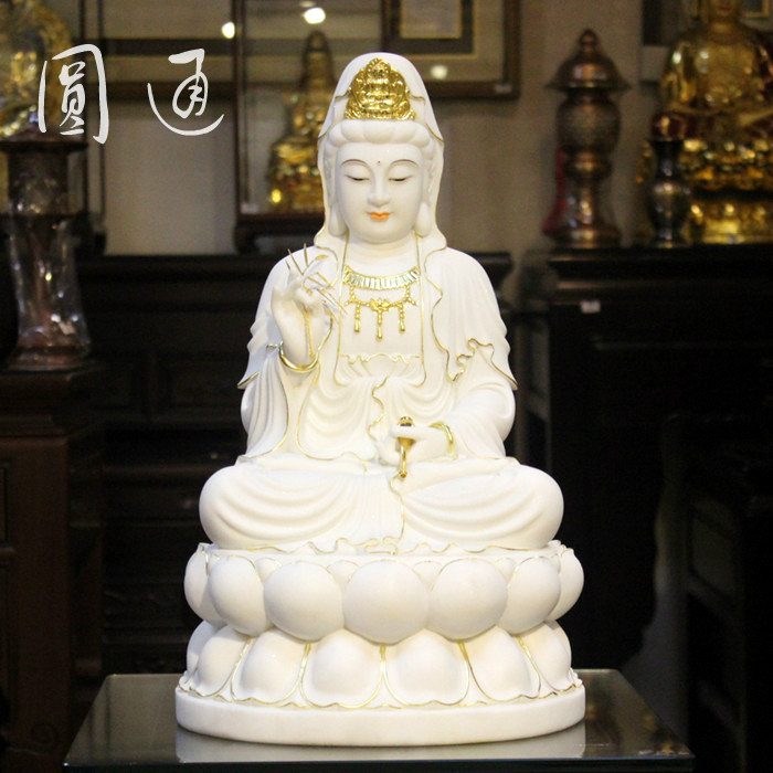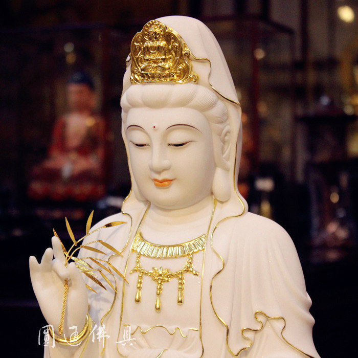 玉雕 佛像 汉白玉 观音 菩萨 金线 彩绘 娑婆三圣 佛教