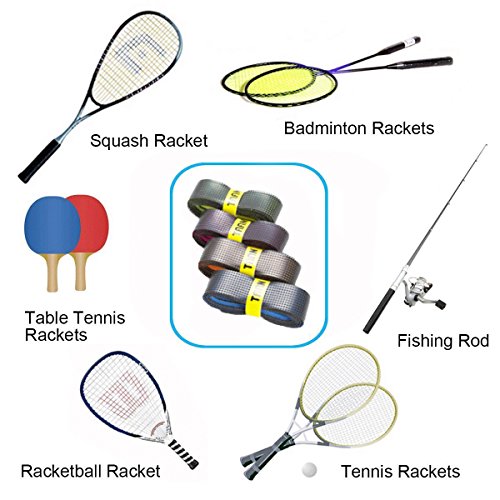Including but not limited to tennis rackets, squash rackets, racquetball rackets, badminton rackets, fishing poles, bike handlebars, stroller handles, walking sticks, football table bars, pull-up bars, pickle ball paddles, softball and baseball bats, dumbbells, Ping-Pong paddles and more.