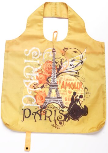 b.b.begonia Paris Print Foldable and Washable Super Strong Reusable Shopping Bag Large, 19-1/2-Inch by 16-1/2-Inch, 1-Piece
