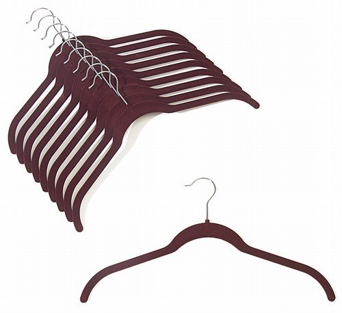 -. Feature : 17" Length x 1/8" Ultra Slim Space Saving Hangers / Color: Burgundy w/ Chrome Hook / Soft Velvety Non-Slip Finish / Sold in Packs of (10) Hangers