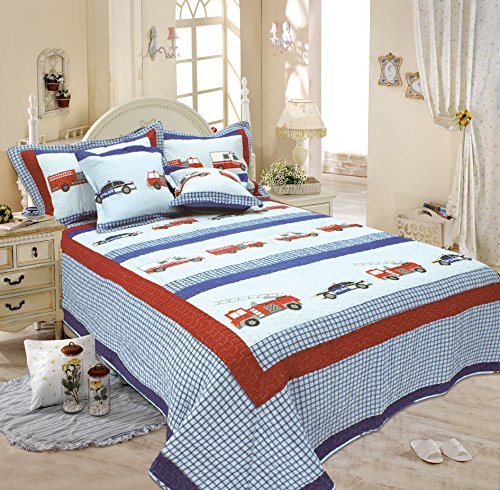 (Newrara)/Bedding Bath/Bedding/DIRECT FROM USA/Newrara Children Cartoon Car Train Design Quilt Bedding Set 100% Cotton 2pcs Twin Size (color4)