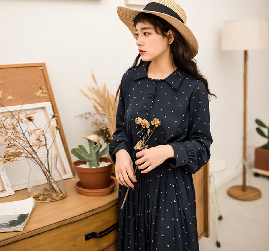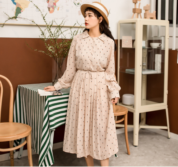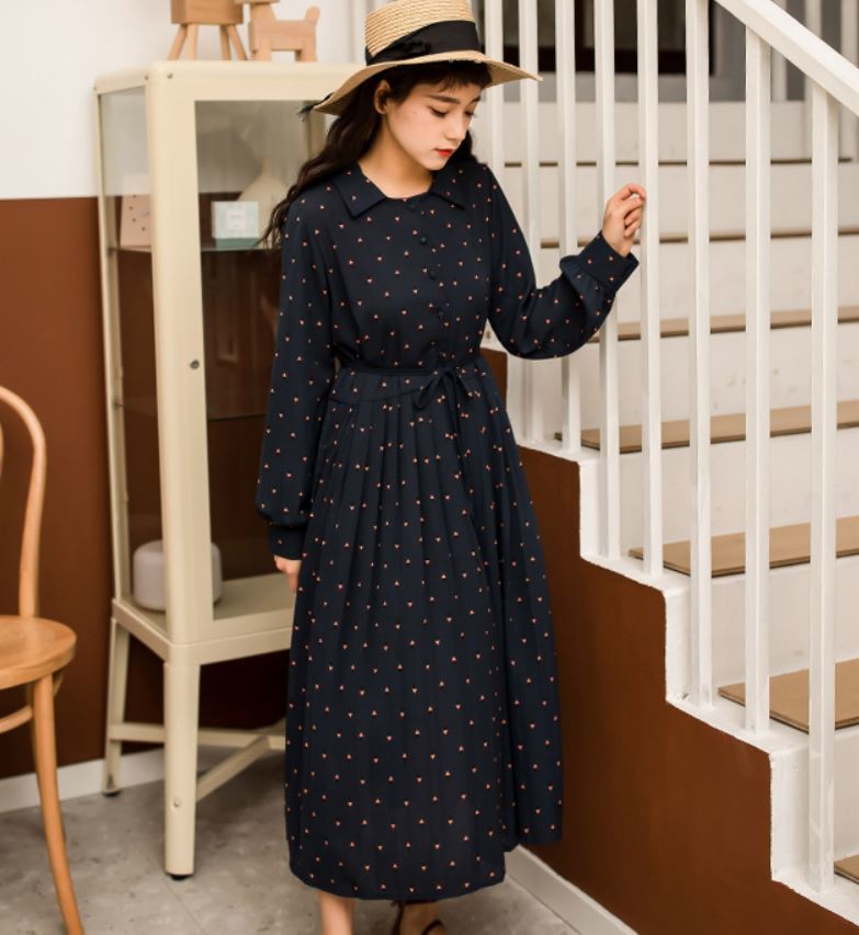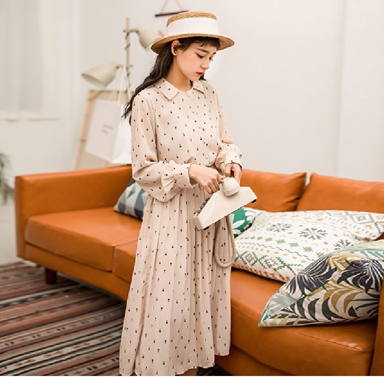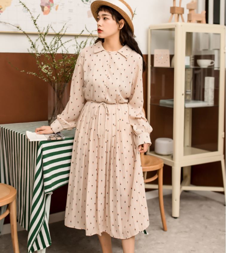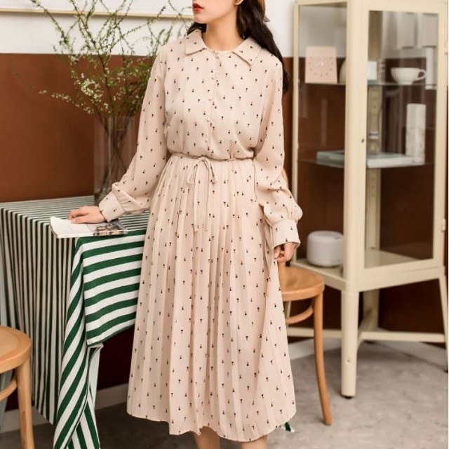 膝丈のプリーツスカートで清楚なお嬢様風の1枚です。