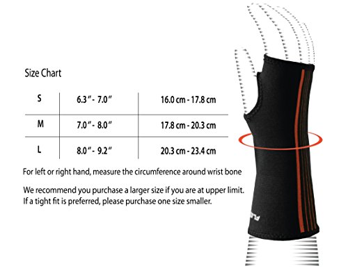 Size Chart (fits both left and right hands): (measure the circumference around wrist bone) ? Small: 6.3"-7.0" ? Medium: 7.0"-8.0" ? Large: 8.0"-9.2" 0