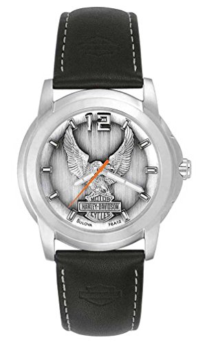 For every wearing occasion from sport to casual professional to dress Bulovas signature brand delivers exceptional design and style enhanced by technology. Paced by its exquisitely crafted diamond watches meticulously engineered self-winding mechanicals and the innovative architectural lines within the high-performance Marine Star collection Bulovas diverse selection encompasses classic and contemporary styling and technology. This Harley Davidson watch has a antiqued pewter dial, luminous hands and markers stainless steel case and black leather strap. This Harley watch is water resisent to 50m/165ft.Feature