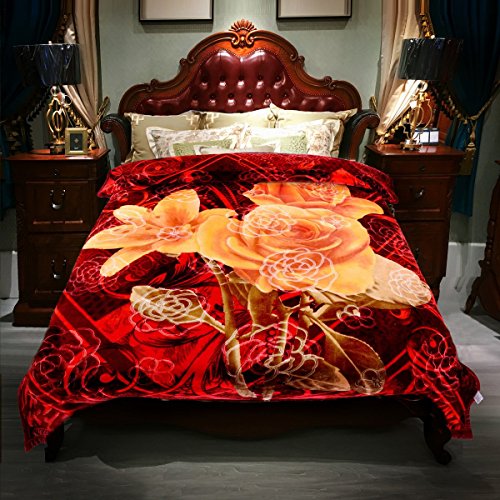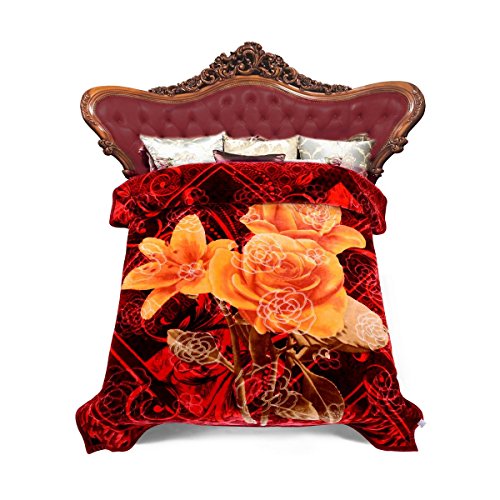 Jml Heavy Thick Plush Velvet Korean Style Mink Blanket, Two Ply Reversible Raschel Blanket with One Side Embossed, King, Red