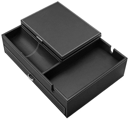 Chrome Metal Hardware, Thick Sides, and White Stitching create a Masculine Finish; Great Gift to Help Organize Daily Items or Jewelry