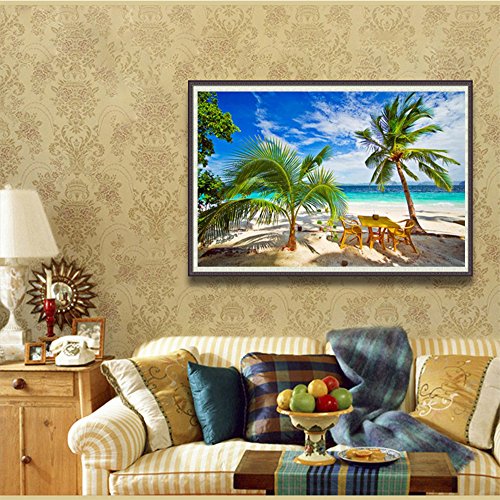 Blxecky 5D DIY Diamond Painting By Number Kits,Leisure beach(16X12inch/40X30CM)