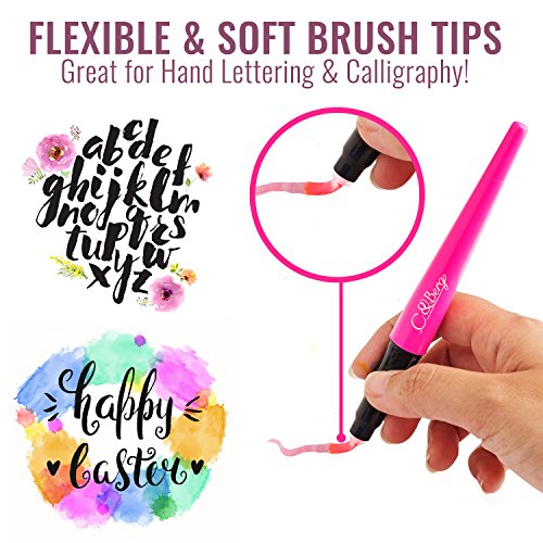 40 Watercolor Brush Pens Set of 40, Soft Flexible Tip Watercolor Paint Markers for Adult Coloring Books, Calligraphy, Manga, Comic, Art, Writing and Sketching, Set of 40 Colors Based Ink - by C&Berg