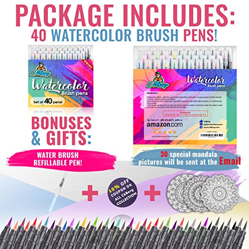 - 😍 ENJOY OUR HIGH QUALITY - Long lasting Watercolor Brush Pens Markers Set in 40 Premium and bright Colors, which also comes with BONUS 1 Water Brush Pen to Make your day!