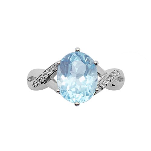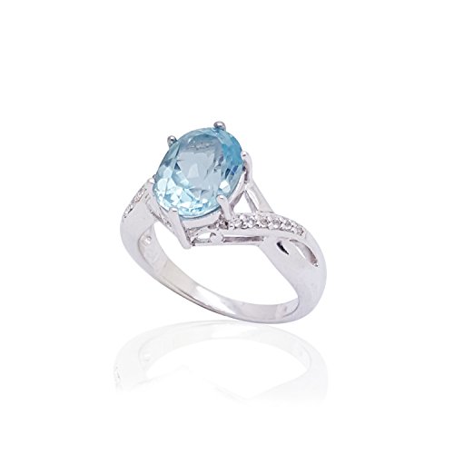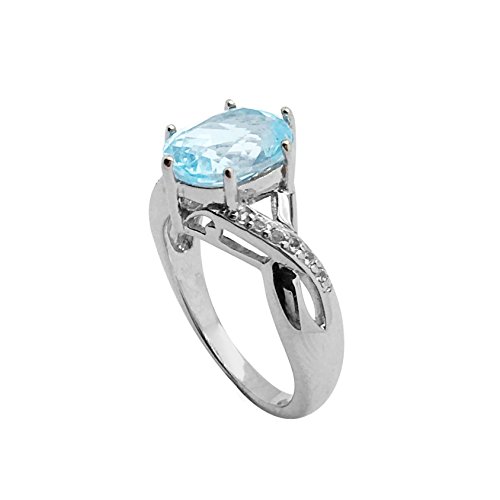 -. Feature : Sterling Silver with 8x10 Sky Blue Topaz / Rhodium plated high polished finish / 0.057cts tcw I-J color Diamonds / 100% Satisfaction Guaranteed / Available in different sizes, Engagement, Wedding Ring, Can be used for any occasion.