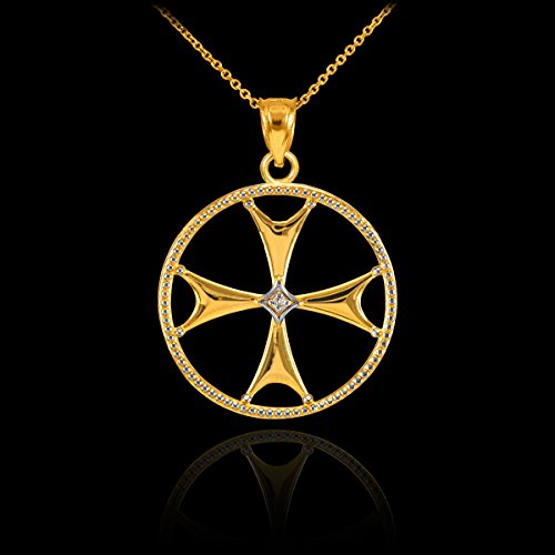 -. Binding : Jewelry -. Brand : Religious Jewelry by FDJ -. Department : womens -. Feature : diamond-accented Maltese cross charm religious charm pendant dangling from its dainty yet durable rolo chain necklace / finely handcrafted with solid 10 karat yellow gold and embellished with a natural white diamond accent / comes with free special gift packaging / made in the USA yet offered at factory direct jewelry P.R.Ice / ships from the manufacturer directly to the customers -. Label : Claddagh Gold -. Manufacturer : Claddagh Gold -. Model : CM946 -. MPN : CM946 -. PartNumber : CM946 -. ProductGroup : Jewelry -. ProductTypeName : FASHIONNECKLACEBRACELETANKLET -. Publisher : Claddagh Gold -. Studio : Claddagh Gold -. Title : 10k Yellow Gold Open Design Diamond-Accented Maltese Cross Pendant Necklace