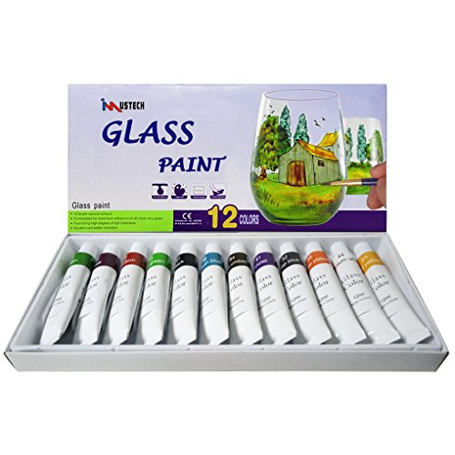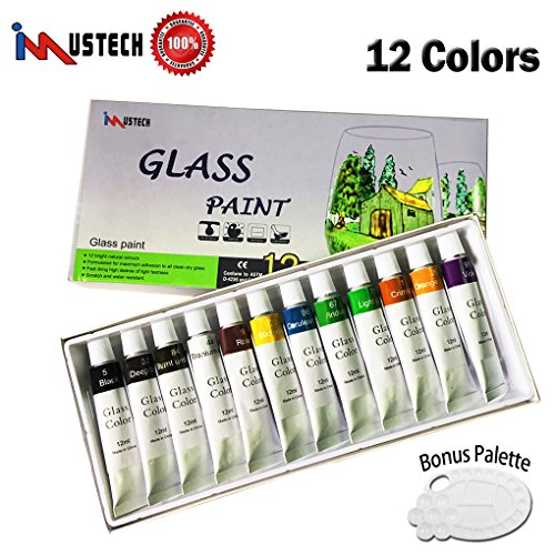 iMustech Glass Paint Set, 12 Colors Glass Paint Kit, Art Paint Set With Palette, Glass Surface Painting Supplies, Excellent Stained Glass Painting Kit for Glass, Ceramics