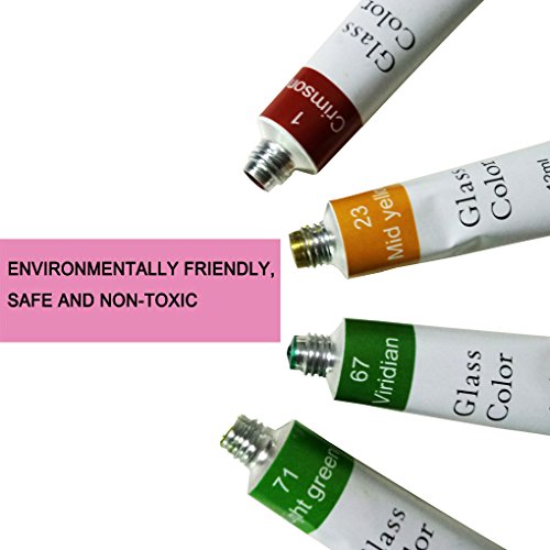 - Professional Glass Paint Kit:Transparent pigment are adopted as colorant,which makes sure that this craft painting set are in bright and transparent colors.If you apply extensively in the glass door or glass windows,it will have the function of anti ultraviolet and heat insulation.After finish your art work,you can let it dry naturally,it will take 7 days for it to reach the best color fastness state. Or you can put your art crafts in the oven at 176°F for 2 hours and then cool it down natural