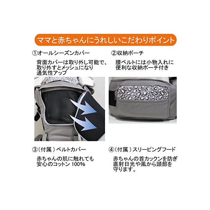 원본상품명: i-angel アイエンジェル ヒップシトキャリア 抱っこ紐 アニマルセピアグレイ 落下防止安全ベルト付(ベルトカバ前向き抱っこ用カバ付) 【SG認/メカ保日本語明書付】