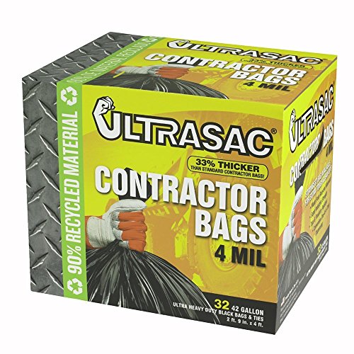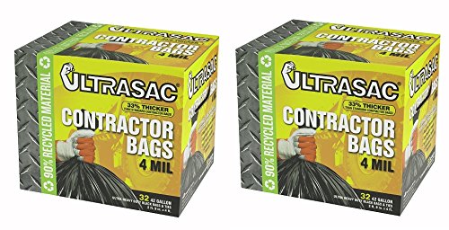 Aluf Plastics 770478 Ultrasac Heavy Duty Professional Quality Contractor Trash Bag, 42 Gallon Capacity, 48" Length x 33" Width x 4 mil Thick, Black (Case of 32) (Pack of 2)