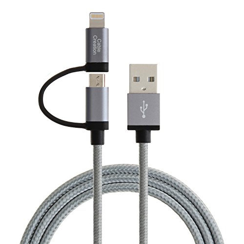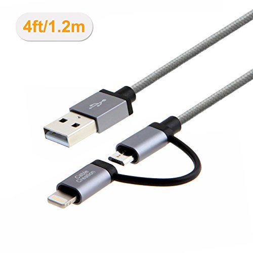 [Apple MFi Certified] CableCreation 2-in-1 Lightning to USB Data Sync Charge Cable, Lightning Micro USB 2-in-1 Cable for iPhone 6 6S 6Plus iPad Air mini Samsung & More,Gray Color,1.2M/4ft.