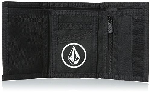 A classic trifold style wallet made from neoprene with Volcom stone logo graphics.
