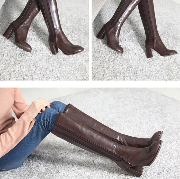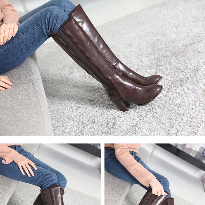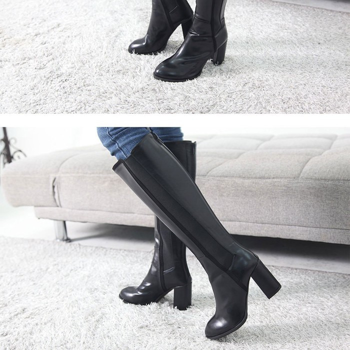 商品名:ロングブーツ レディース チャンキーヒール 太ヒール サイドゴアブーツ 2017 秋冬 ファッション 靴 婦人靴