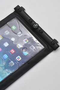| 注意 | ※ご使用前にケース内にテッシュなどをいれ、密閉した状態で水に浸けるなどして、内部の防水を確認してください。 ※カメラ穴は透明ですが、撮影した写真や動画の品質が低下する場合があります。 ※音楽を聴いたり電話を掛けた場合は、音が小さくなりこもった様な音になります。 ※iPadは付属しません。 ※保護ケースを付けたまだと、防水ケースに入らない場合があります。 |