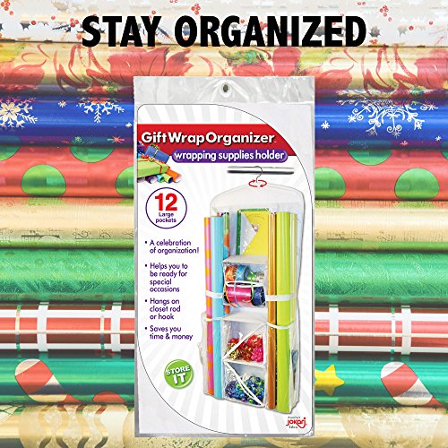 Gift Wrap Organizer - Storage for Wrapping Paper (All Sized Rolls), Gift Bags, Bows, Ribbon and More - Organize Your Closet with this Hanging Bag & Box to Have Organization, Clear Pockets & Hook Hangs