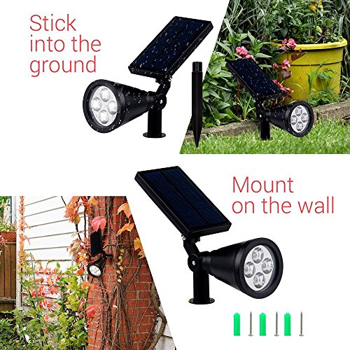 Solar Spot Lights Outdoor, Waterproof 2-in-1 Outside Solar Powered Spotlight Led Lighting Auto On/Off for Pathway, Walkway, Patio, Yard, Garden and Landscape 4-Pack