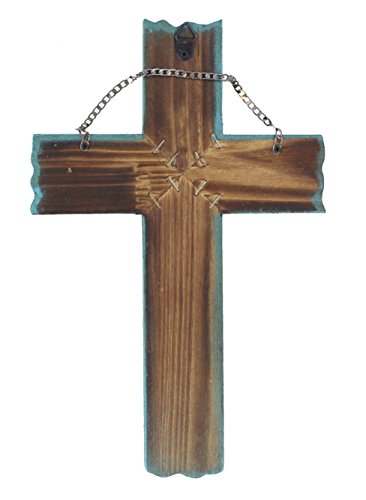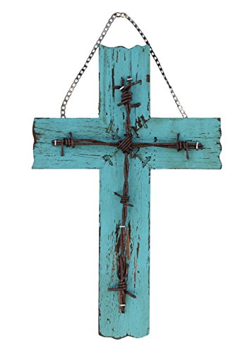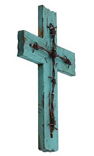 Simple 10 1/2" Weathered Wood & Barbwire Decorative Wall Cross - Shabby Chic Chalk Paint Look